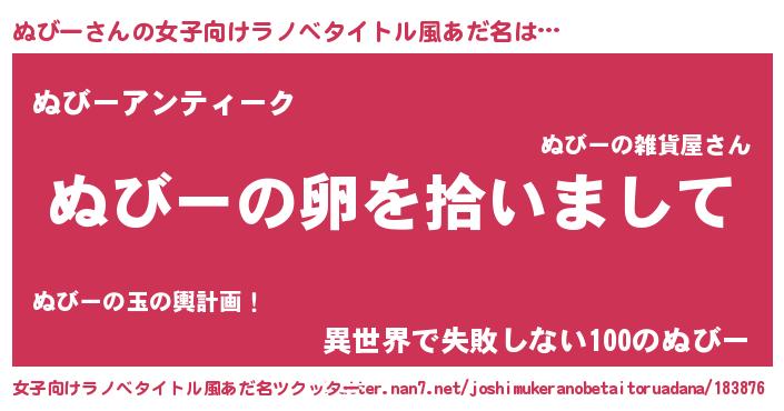 | 胡散臭い通販商品みたいなあだ名 | 『伝統あるサプリメント…その名も「ぬびー」』 |