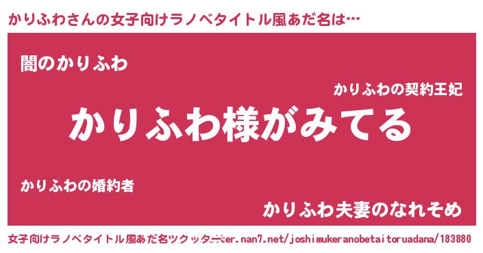 | 意味不明あだ名 | 『とにかく怪しいかりふわ』 |