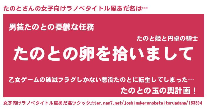 | 意味不明あだ名 | 『とにかく怪しいたのと』 |