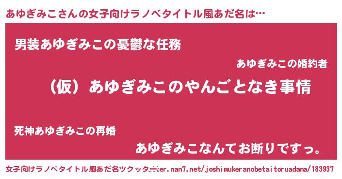 | 男性向けラノベタイトル風あだ名 | 『あゆぎみこの憂鬱』 |