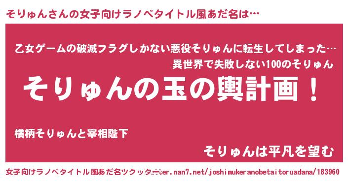 | 男性向けラノベタイトル風あだ名 | 『転生したらそりゅんだった件』 |
