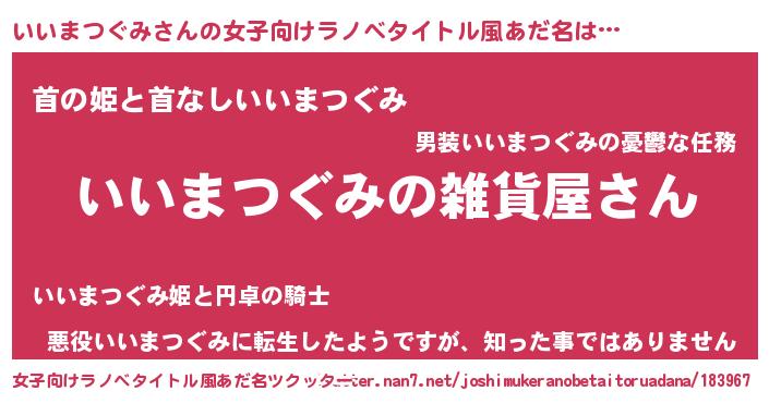 | 男性向けラノベタイトル風あだ名 | 『やはりいいまつぐみの青春ラブコメはまちがっている 』 |