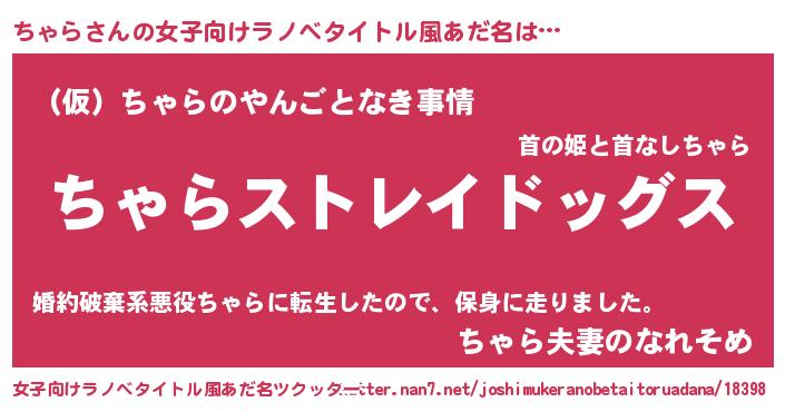 | 意味不明あだ名 | 『自称ちゃら』『ペロリンちゃら』 |