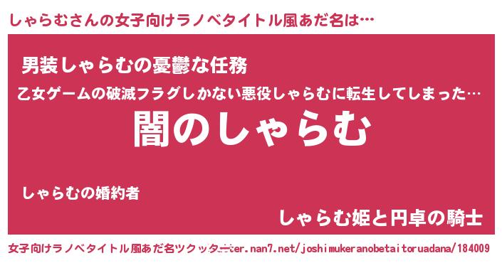 | 胡散臭い通販商品みたいなあだ名 | 『テレビで話題のアガリクス…その名も「しゃらむ」』 |