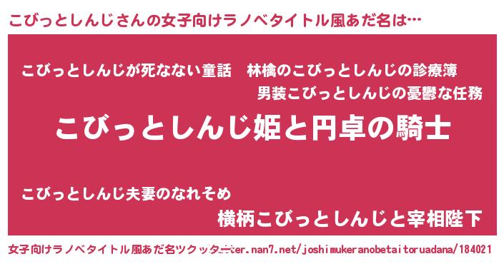 | 男性向けラノベタイトル風あだ名 | 『こびっとしんじの憂鬱』 |