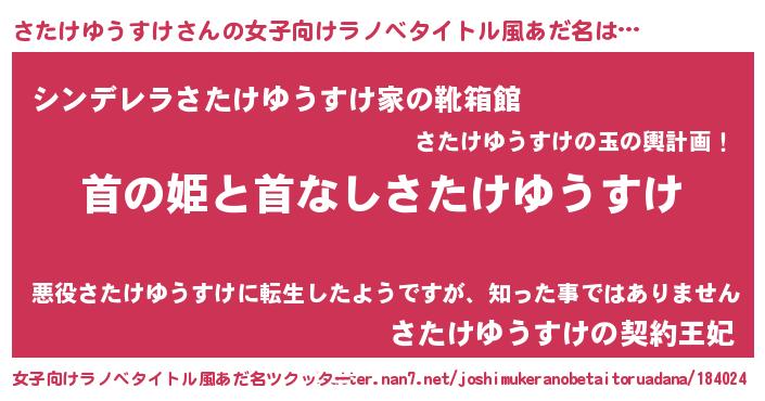 | 肩書あだ名 | 『さたけゆうすけプロデューサー』 |