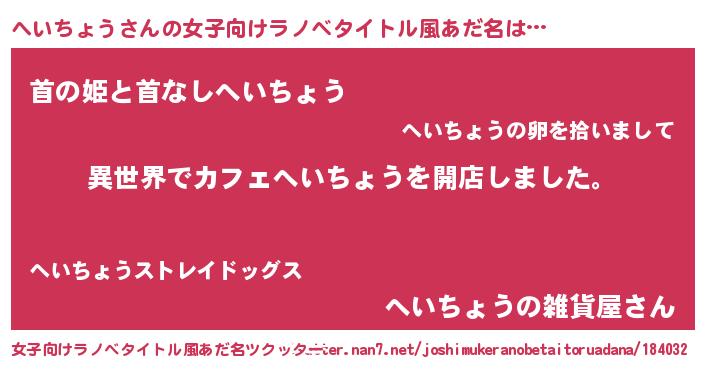 | ヘコむあだ名 | 『へいちょう(笑)』『なまこ酢』 |