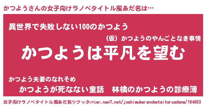 | 胡散臭い通販商品みたいなあだ名 | 『信頼と実績のサプリメント…その名も「かつよう」』 |