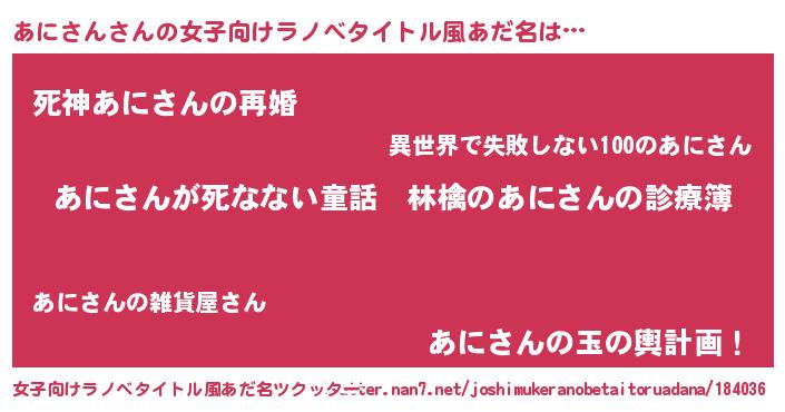 | 胡散臭い通販商品みたいなあだ名 | 『ハリウッド女優が絶賛した世界で10本だけ現存している希少なブランデー…その名も「あにさん」』 |