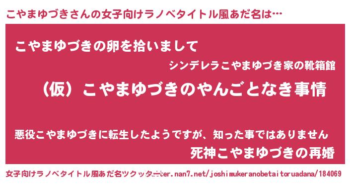 | 男性向けラノベタイトル風あだ名 | 『こやまゆづきの憂鬱』 |