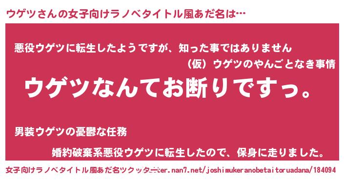 | 男性向けラノベタイトル風あだ名 | 『魔法科高校のウゲツ』『ウゲツの憂鬱』 |