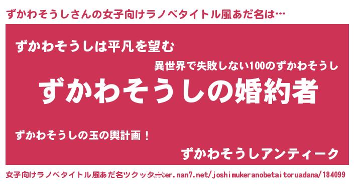 | 男性向けラノベタイトル風あだ名 | 『うちの娘の為ならば、俺はもしかしたらずかわそうしも倒せるかもしれない。』 |