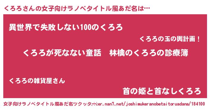 | 男性向けラノベタイトル風あだ名 | 『魔弾の王とくろろ』 |