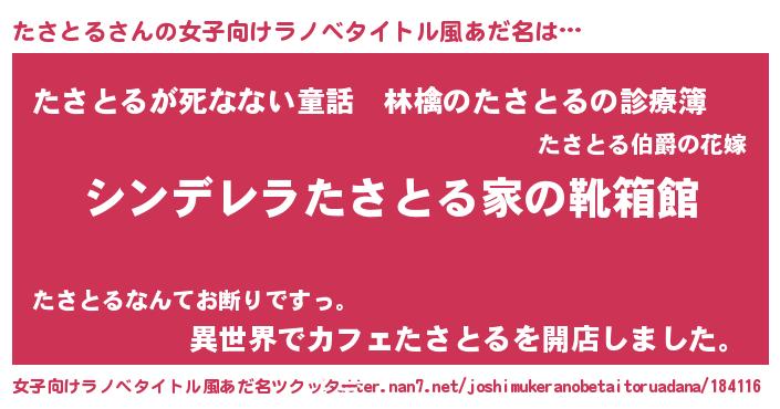 | 意味不明あだ名 | 『住所不定無職たさとる(85歳)』 |