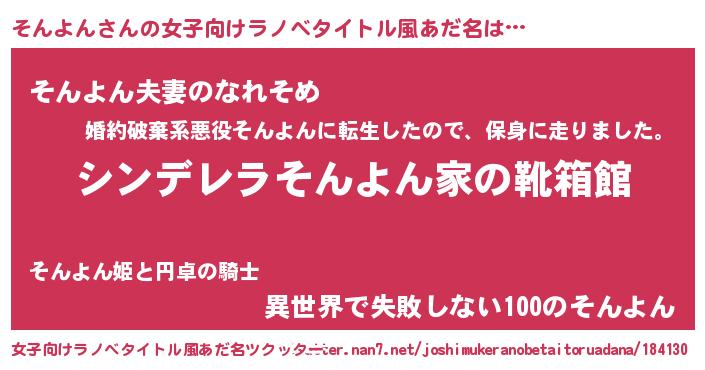 | ヘコむあだ名 | 『そんよん(小並感)』『そんもー』 |