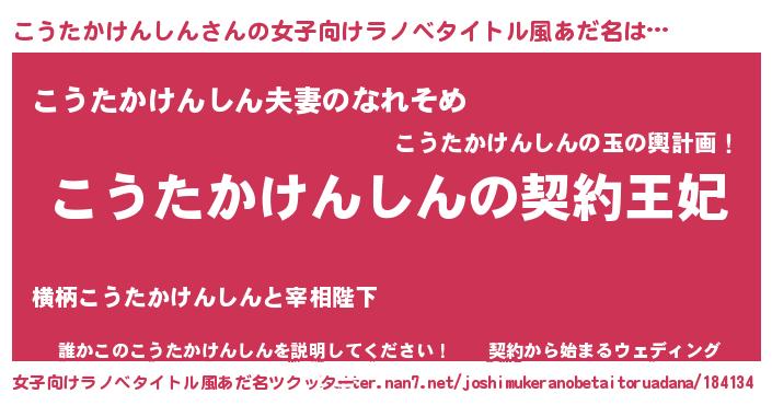 | 意味不明あだ名 | 『永久保存こうたかけんしん』 |