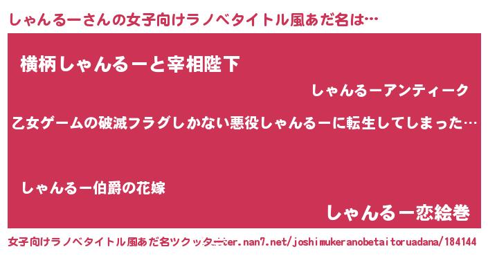 | 男性向けラノベタイトル風あだ名 | 『魔弾の王としゃんるー』 |