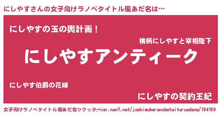 | 意味不明あだ名 | 『自称にしやす』『つくし科にしやす属』 |