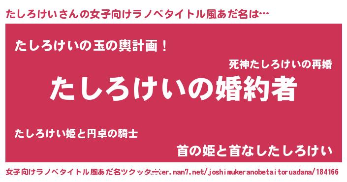 | 男性向けラノベタイトル風あだ名 | 『うちの娘の為ならば、俺はもしかしたらたしろけいも倒せるかもしれない。』 |