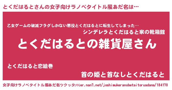 | 胡散臭い通販商品みたいなあだ名 | 『幸せが訪れる高級そうな絵画…その名も「とくだはると」』 |