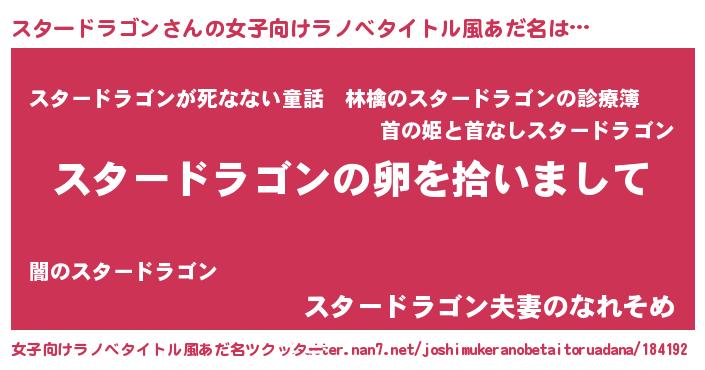 | 男性向けラノベタイトル風あだ名 | 『スタードラゴンの嫁は女の子じゃないと思った?』 |