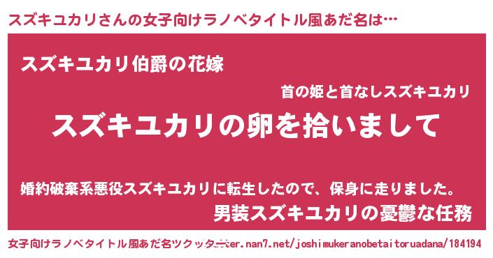 | 男性向けラノベタイトル風あだ名 | 『ダンジョンにスズキユカリを求めるのは間違っているだろうか』 |
