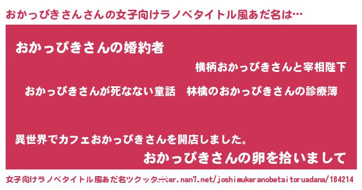 | 胡散臭い通販商品みたいなあだ名 | 『ハリウッド女優が絶賛した100年もののヴィンテージワイン…その名も「おかっぴきさん」』 |
