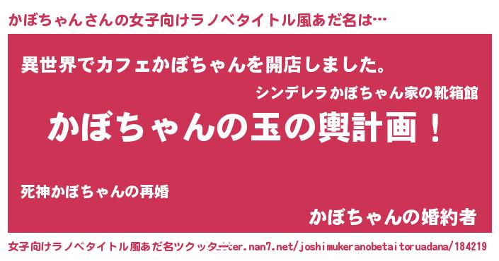 | 男性向けラノベタイトル風あだ名 | 『かぼちゃん~年齢イコール彼女いない歴の魔法使い~』 |