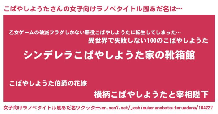 | 意味不明あだ名 | 『住所不定無職こばやしようた(8歳)』 |
