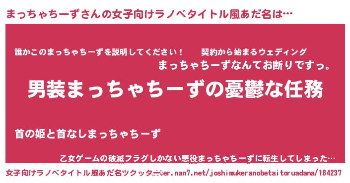 | 男性向けラノベタイトル風あだ名 | 『うちのまっちゃちーずが世界を掌握している!』 |