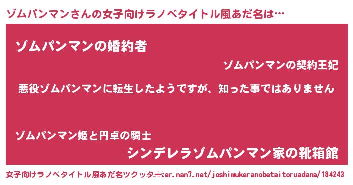 | 男性向けラノベタイトル風あだ名 | 『この素晴らしい世界にゾムパンマンを!』 |