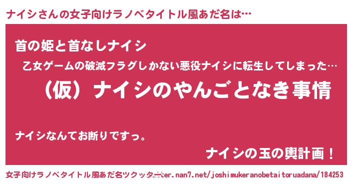 | 男性向けラノベタイトル風あだ名 | 『ナイシの憂鬱』『はたらくナイシさま!』 |