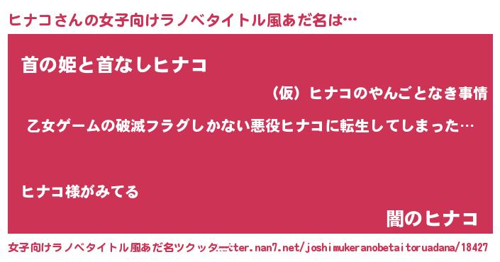| 男性向けラノベタイトル風あだ名 | 『魔弾の王とヒナコ』『ヒナコの憂鬱』 |