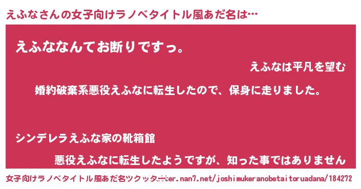 | 男性向けラノベタイトル風あだ名 | 『エフナスレイヤー』 |
