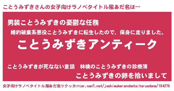 | 男性向けラノベタイトル風あだ名 | 『魔法科高校のことうみずき』 |