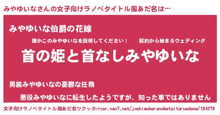 | 男性向けラノベタイトル風あだ名 | 『はたらくみやゆいなさま!』 |