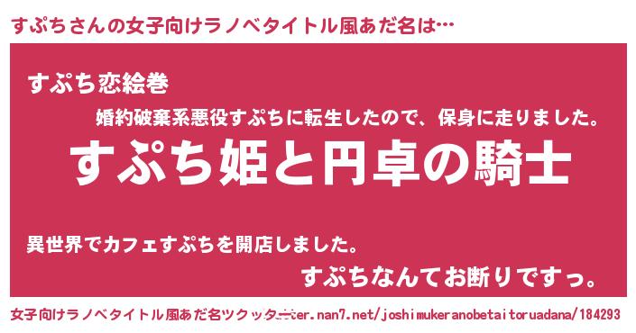 | 男性向けラノベタイトル風あだ名 | 『すぷちの憂鬱』『魔法科高校のすぷち』 |
