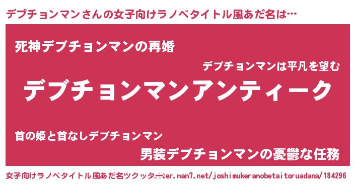 | 意味不明あだ名 | 『自称デブチョンマン』 |