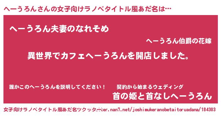 | 男性向けラノベタイトル風あだ名 | 『誰もが恐れるあのへーうろんが、ぼくの専属メイドになるようです。』 |