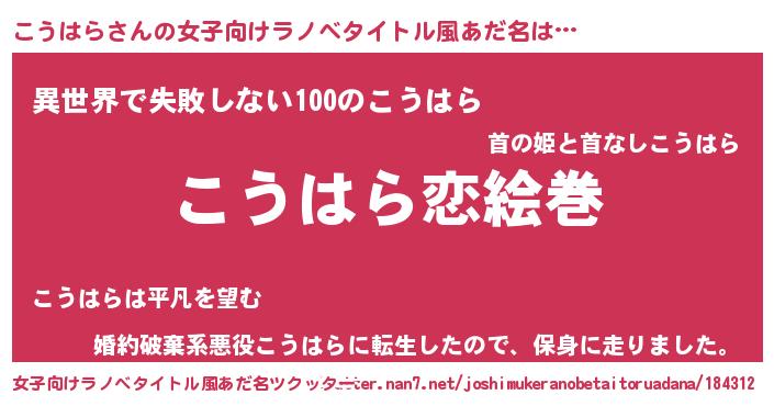 | 男性向けラノベタイトル風あだ名 | 『ノーゲーム・ノーコウハラ』 |