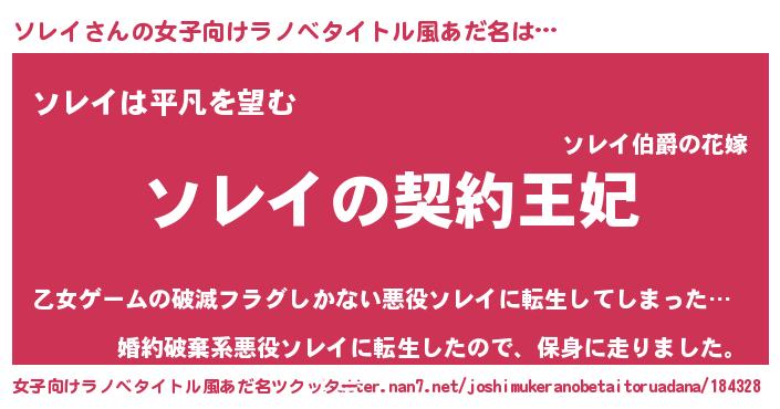 | 男性向けラノベタイトル風あだ名 | 『ソレイという概念が存在しない退屈な世界 』 |