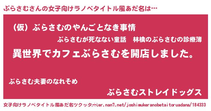 | ヘコむあだ名 | 『ぶらさむ(笑)』『ぶらにゅー』 |
