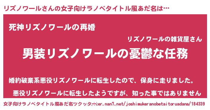 | 男性向けラノベタイトル風あだ名 | 『うちのリズノワールが世界を掌握している!』 |
