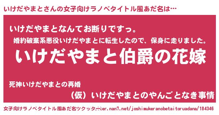 | 肩書あだ名 | 『いけだやまと国家主席』 |