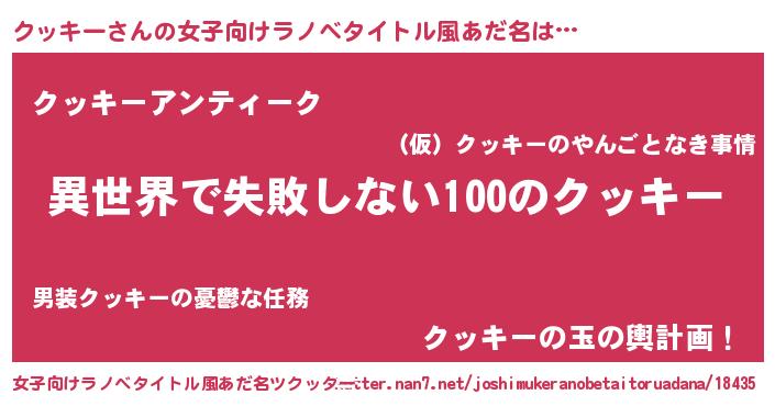 | 男性向けラノベタイトル風あだ名 | 『クッキーという概念が存在しない退屈な世界 』 |