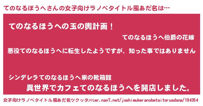 | 男性向けラノベタイトル風あだ名 | 『この素晴らしい世界にてのなるほうへを!』 |