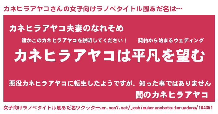 | 胡散臭い通販商品みたいなあだ名 | 『信頼と実績のネックレス…その名も「カネヒラアヤコ」』 |