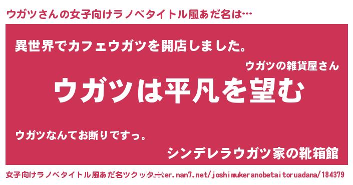 | 男性向けラノベタイトル風あだ名 | 『ダンジョンにウガツを求めるのは間違っているだろうか』 |