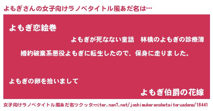 | 男性向けラノベタイトル風あだ名 | 『転生したらよもぎだった件』 |