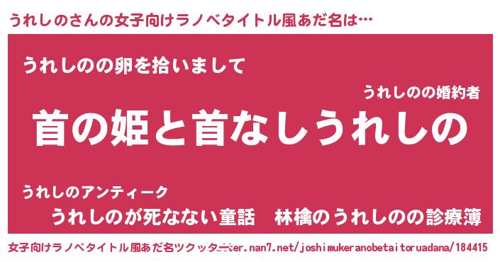 | 男性向けラノベタイトル風あだ名 | 『はたらくうれしのさま!』 |